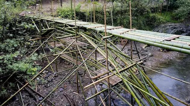 第二個(gè)階段的施工期間一共有 23 天。這段時(shí)間里,設(shè)計(jì)師每天都和工匠在一起,從橋的基礎(chǔ)到結(jié)構(gòu)、圍欄、橋面,控制施工細(xì)節(jié)。竹子經(jīng)過(guò)簡(jiǎn)單的加工,就開(kāi)始了它的成橋之旅。